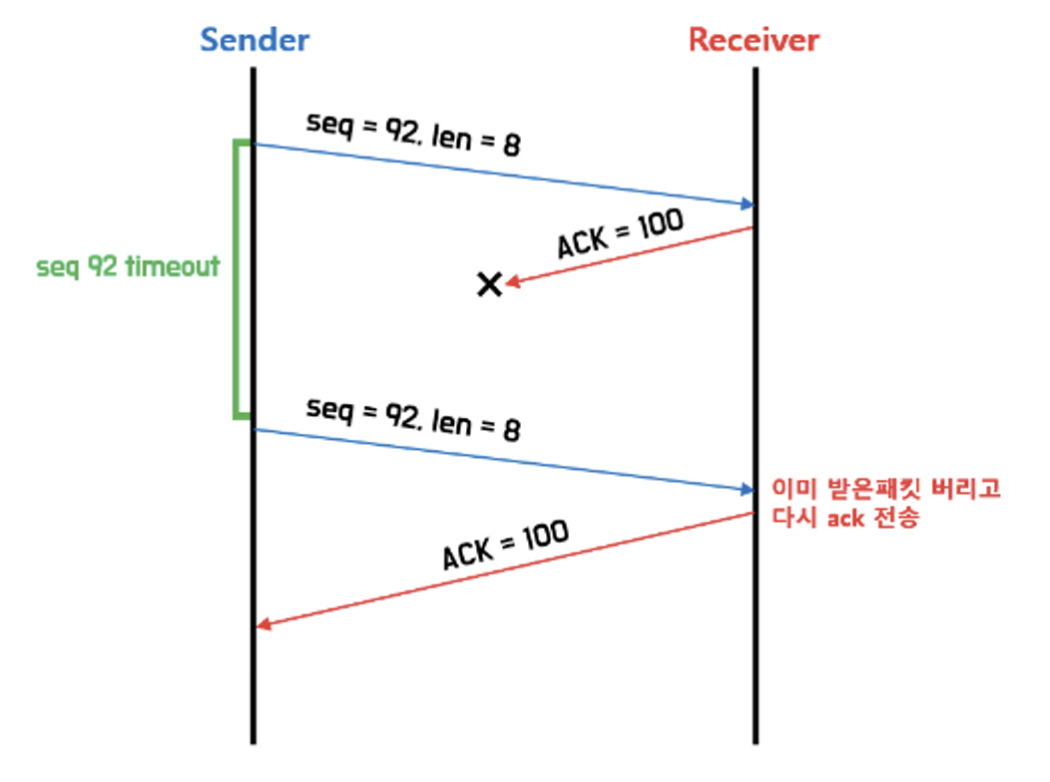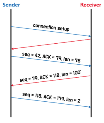 ex) 0 ~ 999, 1000 ~ 1999의 세그먼트를 받았을 때 ack# = 각각 1000, 2000