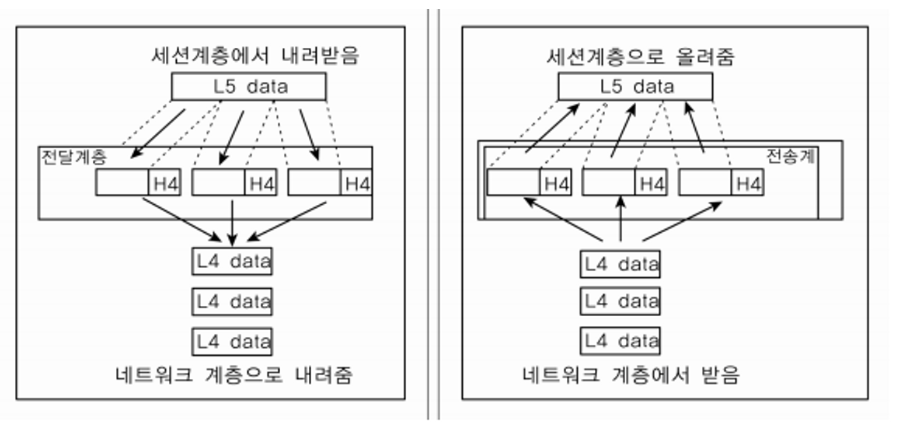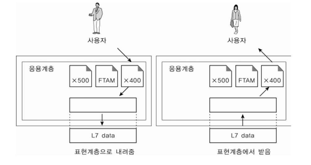 - 송신자 : 사용자로부터 정보를 입력받아 하위 계층으로 전달한다.