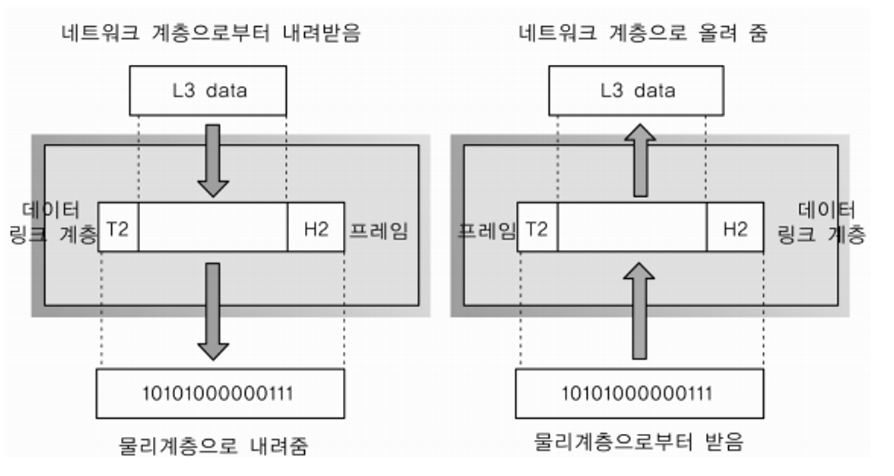 - 상위 계층에서 구성한 ‘Datagram’에 헤더와 트레일러를 추가한다.