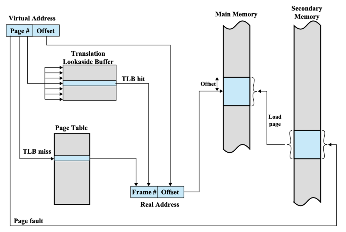 가상메모리 시스템에서 CPU는 가상 주소를 통해 물리 주소에 접근하여 작업한다.