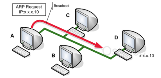 - D(목적지 IP에 해당하는 컴퓨터)는 패킷을 수신 후 자신의 MAC 주소를 A에게 전송한다.