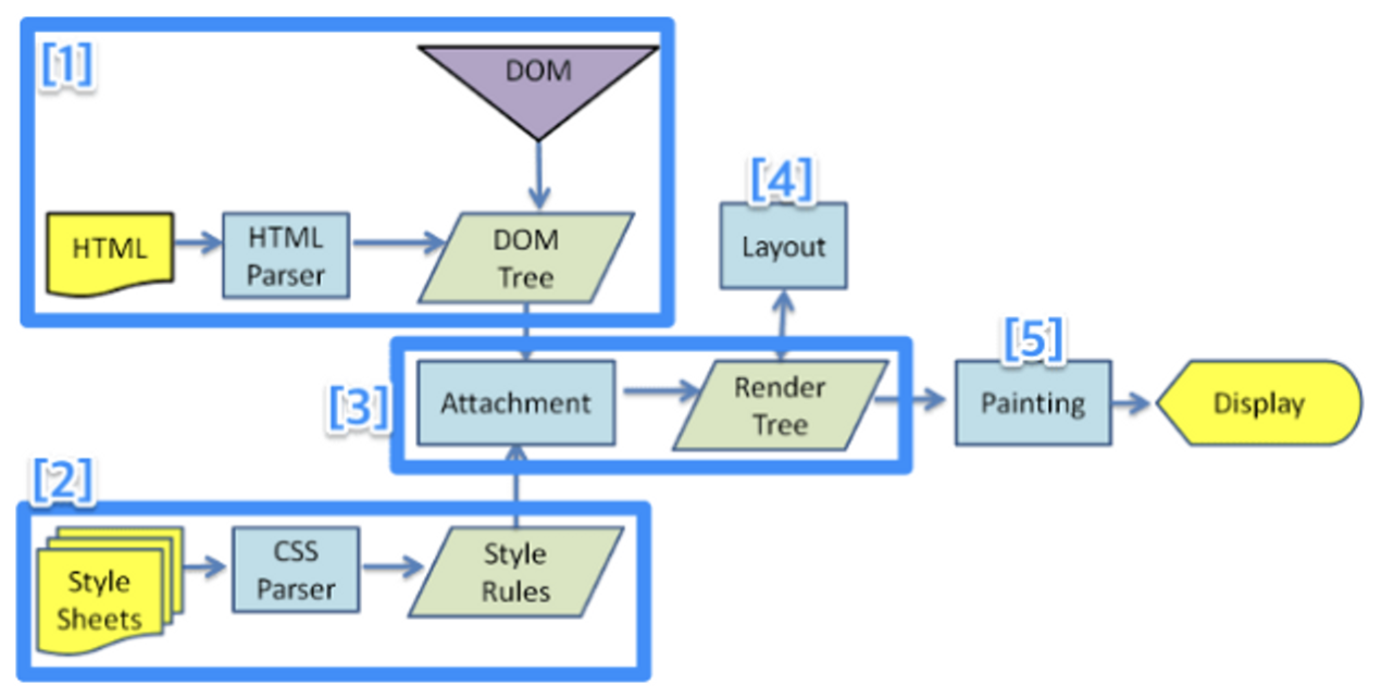 HTML, CSS, JS, 이미지 등 웹 페이지에 포함된 모든 요소들을 화면에 보여주는 작업을 말한다.