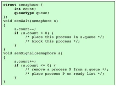 - 만약 S < 0 이 되면 semWait() 를 호출한 프로세스는 Block된다.