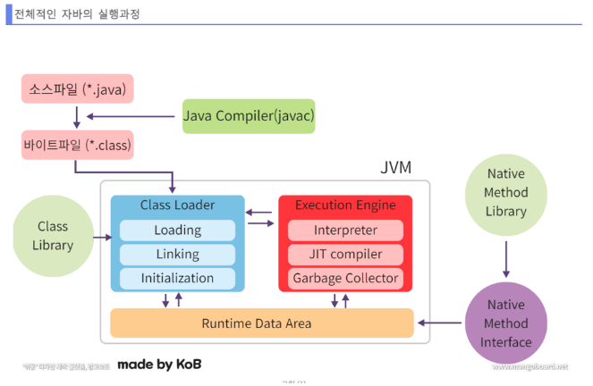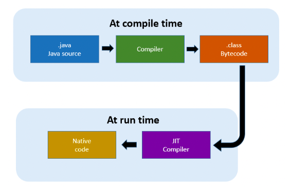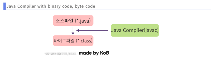 - Java Compiler(javac)를 통해 소스파일(.java)를 바이트 코드 파일(.class)로 변환한다.