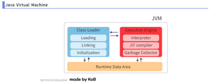 - 실행엔진(Execution Engine)은 JVM 메모리에 올라온 바이트 코드들을 기계어로 변환하며 실행한다.